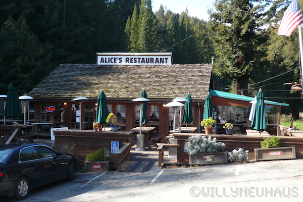 Etwa in der Mitte des Weges liegt ein Restaurant, dessen Name einige Berühmtheit erlangt hat: Alice's Restaurant. Der berühmte Name stammt aus einem Film von Sean Penn und einem Song von Arlo Guthrie mit demselben Namen. Dieses Restaurant ist ein beliebter Treffpunkt für Biker, an einem schönen und warmen Sonntag sind hier immer mehrere Duzend Harleys zu sehen. Wir haben uns hier einen Kaffee geleistet, bevor wir wieder "on the road" gingen.