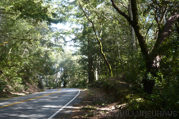 Wie auf dieser Reise üblich, sind wir von Sunnyvale über eine Nebenstrasse nach San Francisco gefahren, diesmal über den Skyline Boulevard, der auf der Costal Range dahin führt. Beinahe bei jeder Kurve öffnet sich der Blick auf der linken Seite zur Bay Area während auf der linken Seite der Pazifik in der Sonne glänzt. Fast immer liegt die Strasse im Wald, der weitgehend aus den gigantischen Costal Redwoods (Sequoia sempervirens) besteht. Die Sonne scheint durch das dichte Blätter- und Nadeldach immer wieder auf die Strasse.