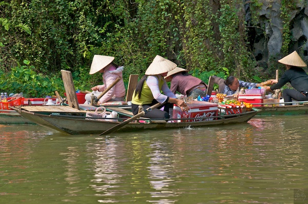 Die lokalen Frauen verkaufen von ihren Booten aus allerlei Touristen-Notwendigkeiten wie Coca-Cola, Sprite und auch etwas lokale Früchte. Es scheint, als ob Touristen ohne die Ami-Säfte nicht leben können. Die landestypischen Hüte der Frauen sieht man nicht nur in den Touristen-Hochburgen, auch in jedem kleinen Örtchen und auf fast allen Feldern sind sie verbreitet. Nicht nur ein Cliché, sondern tatsächlich in Gebrauch!
