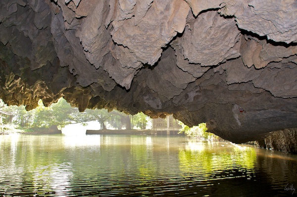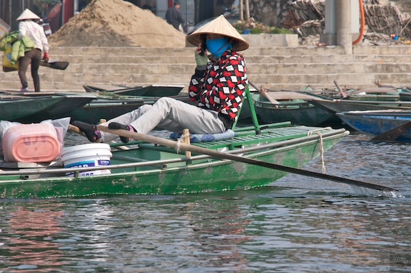 Was wie ein Widerspruch tönt, ist auch einer. Die sogenannt trockene Halong-Bay liegt etwa 100 km süd-östlich von Hanoi im Landesinnern. Weder ist diese Gebiet eine Bucht, noch ist sie trocken, ganz im Gegenteil. Die Karstlandschaft wird mit kleinen Booten befahren, das Wasser des Flusses ist aber nicht mal einen Meter tief.