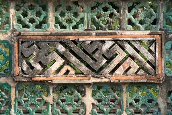 Das Symbol in dieser Absperrwand hat für unterschiedliche Kulturen unterschiedliche Bedeutung. In der lokalen Kultur ist es ein Symbol für Glück und Wohlstand. In einer anderen, uns näherliegenden Kultur ist die Bedeutung eine völlig andere und hat mit Glück nichts zu tun.