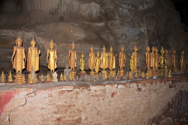 Einige der etwa 5‘000 Buddha-Figuren, welche in den Höhlen aufbewahrt wurden. Die meisten dieser Figuren wurden während des Indochina-Krieges hier vor Plünderungen in Sicherheit gebracht. Viele hundert Figuren sind heute noch hier und stellen eine der grossen Touristen Attraktionen dar, sie werden täglich von vielen hundert Besuchern angesteuert.