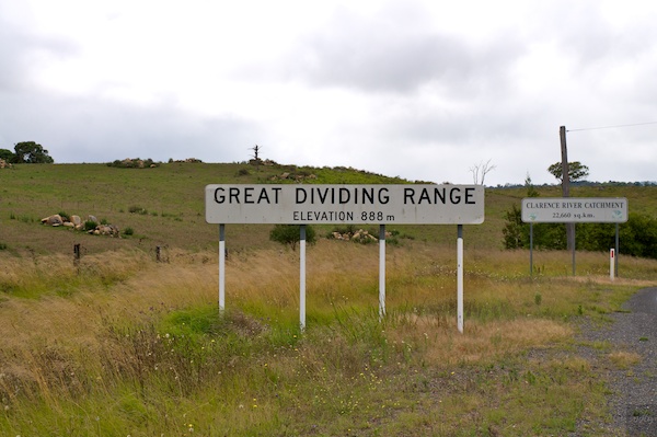 Den Höhepunkt des Tages erreichten wir auf 888 m.ü.M., als wir die Dividing Range überquerten. Diese Bergkette teilt das Innenland Australiens vom Küstenstreifen im Osten. Neben der Wasserscheide hat sie häufig dieselbe Funktion bezüglich des Wetters.