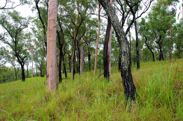 Kurz vor dem heutigen Etappenziel wütete vor wenigen Wochen ein Buschbrand und vernichtete das ganze Unterholz unter den Eukalypten. Bald schon setzten aber die Regenfälle ein und schon spriesst neues, hellgrünes Gras. Die Natur lässt sich nicht so einfach unterkriegen!