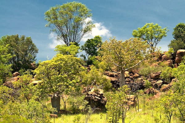 Kurz ausserhalb unseres gestrigen Campgrounds in Timber Creek beginnen die Baobabs die Landschaft zu verzieren.
