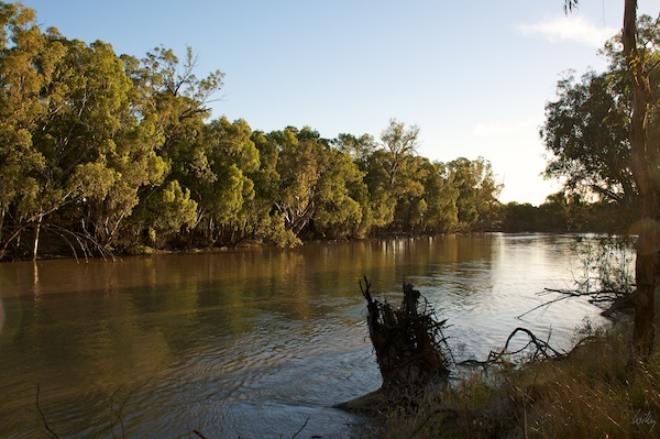 Einer der Flüsse (Murrumbidgee), welche die ganzen Probleme verursachen, läuft direkt hinter unserem heutigen Campground vorbei, noch wirkt er sehr harmlos, doch die Bewohner von Hay trauen dem Frieden offenbar nicht ganz, denn ...