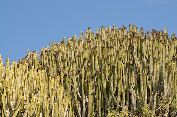 Die Pflanze heute ist eine Euphorbia canariensis, die gerade in voller Blüte steht. Auf allen Inseln des kanarischen Archipels sind diese eindrücklichen, endemischen Kandelaber verbreitet. Die Blüte haben wir bisher noch nie miterlebt.