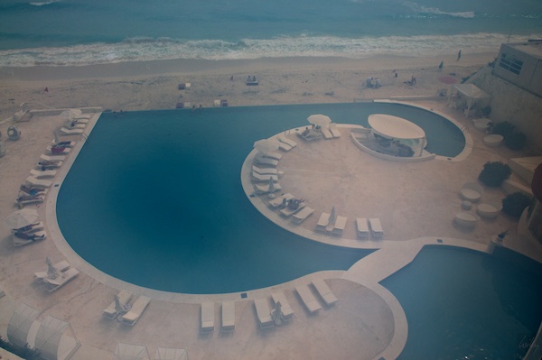 Bereis um 7 Uhr wurde ich von einem erneuten tropischen Wolkenbruch geweckt, die Luftfeuchtigkeit stieg auf nahezu 100%. Das Bild, welches ich vom Hotelpool machte, ist entsprechend „dunstig“, da sich die relativ kühle Linse in der feucht-warmen Luft unmittelbar beschlug. Trotzallem ein schöner Pool!