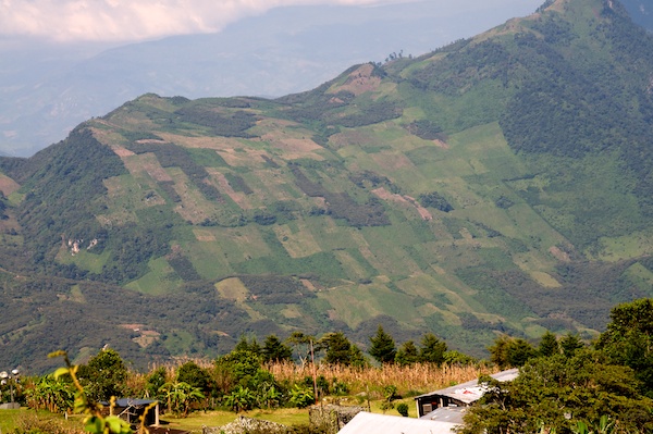 Schon bald nach Villahermosa stieg die Strasse an, damit wir die angestrebte Höhe auch erreichen konnten. Immer wieder boten sich Ausblicke auf die grüne Landschaft, die intensiv landwirtschaftlich genutzt wird: Viehzucht, Mais und auch Bananen sind typische Produkte.