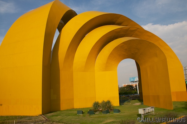 Am Nachmittag machten wir eine Stadtrundfahrt mit einem Doppeldecker Bus und sahen so auf einfache Art und Weise einige zentrale Gebiete der Stadt. Hier ein Symbol des modernen Guadalajara an der Autobahn, welche in die Stadt hinein führt. Die Stadtrundfahrt ersparte uns die Fahrt durch die Stadt mit dem eigenen Auto, was für Orts-Unkundige immer eher anstrengend ist. Gleichzeitig auf den dichten Verkehr zu achten und dabei die wichtigen Sehenswürdigkeiten nicht zu verpassen ist eine Kunst, welche wir nicht beherrschen.