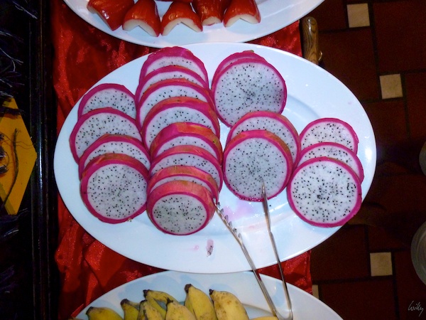 Auf dem Weg von Mũi Né nach Saigon trafen wir heute Dragon Fruits (in anderen Teilen der Welt Pitahaya genannt) in allen Lebens-Stadien an. Bereits beim Frühstück ass ich die ersten reifen Früchte vom Buffet. Das somit letzte Lebensstadium der Frucht.