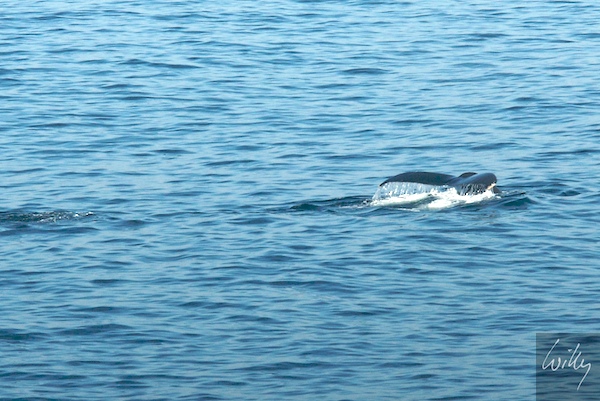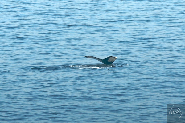 Nachtrag nach dem Morgenessen: Zu unserer Ankunft 4 Wochen zuvor in diesem Hotel haben uns am frühen Morgen beim Frühstück einige Buckelwale begrüsst, die nur wenige Dutzend Meter vor der Frühstücksterasse zum Atemholen auftauchten. Heute zum Abschied nochmals dasselbe Spektakel, diesmal gelangen mir aber einige Aufnahmen.
