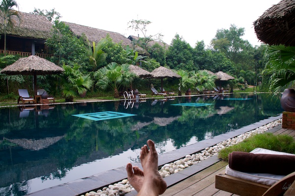 Ein Bild musste auf jeden Fall noch her, obwohl wir nie im Pool waren. Das Wetter war dazu schlicht zu unfreundlich und das Wasser zu kalt. Die Anlage des Pilgrimage Village in Hue / Vietnam ist auch bei diesem Wetter sehr schön und ruhig. Vom hektischen Verkehr Vietnams ist hier weder etwas zu hören noch zu sehen.