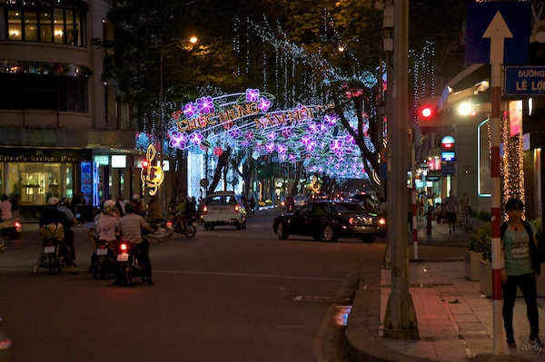 Die ganze Innenstadt Saigons ist nachts mit Leuchtgirlanden geschmückt, da vom 23. - 26. Januar 2012 das chinesische Neujahrsfest stattfindet. Erfinderisch wie die Vietnamesen sind, feiern sie sowohl das westliche als auch das chinesische Neujahrsfest. Zum westlichen Fest bleibt das öffentliche Leben nur einen Tag ruhen, das chinesische Fest schlägt hier mit einer ganzen Woche zu Buche!