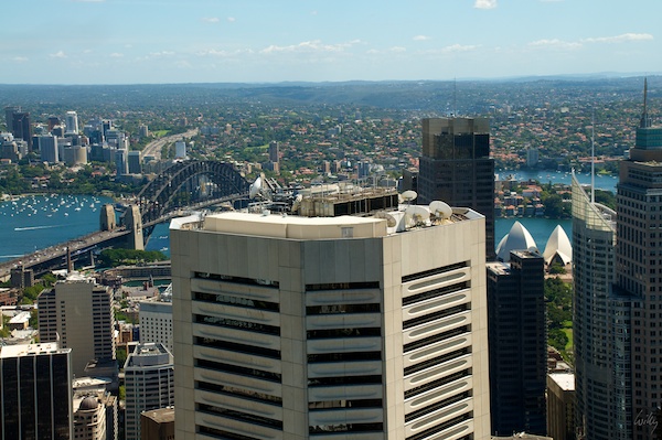 Nach einer problemlosen Landung brachte uns ein Taxi zu unserem Hotel, wo es uns aber nicht lange hielt. Bald schon waren wir wieder unterwegs. Der Sydney Tower war gerade um die Ecke und wir wollten uns die schöne Aussicht nicht entgehen lassen.