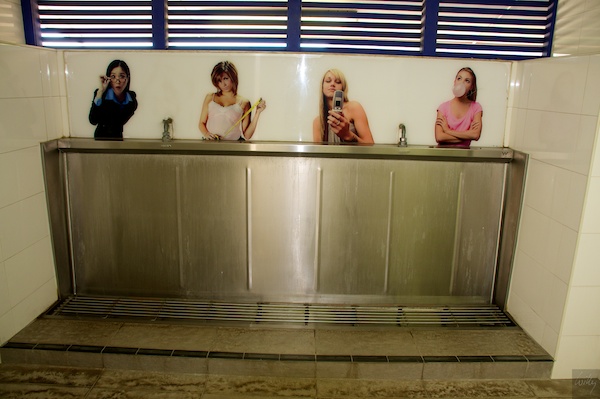 Am Strand in Airlie Beach steht wie überall an solchen Orten eine öffentliche Bedürfnis-Anstalt. Wie in den meisten Orten Australiens waren auch diese sehr sauber. Ungewöhnlich aber die Dekoration, welche ich so noch nie antraf!