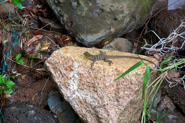 Statt des Playtypus bemerkte ich diese Echse nahe beim Wasser und könnte sie eigentlich als Platypus verkaufen? Lieber nicht, denn wer einmal lügt, dem glaubt man nicht mehr und ich kann es mir nicht leisten den einen Leser meines Tagebuches noch zu vergraulen.