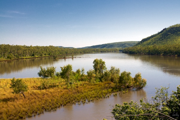 Der Victoria River ist einer der grossen Flüsse in diesem Gebiet, er frass in dieser Gegend sein Flussbett in die hiesigen Sandsteinfelsen. Kurz ausserhalb von Timber Creek gibt es einen Policeman‘s Lookout, von welchem aus der Fluss in seiner ganzen Breite gut zu sehen ist.