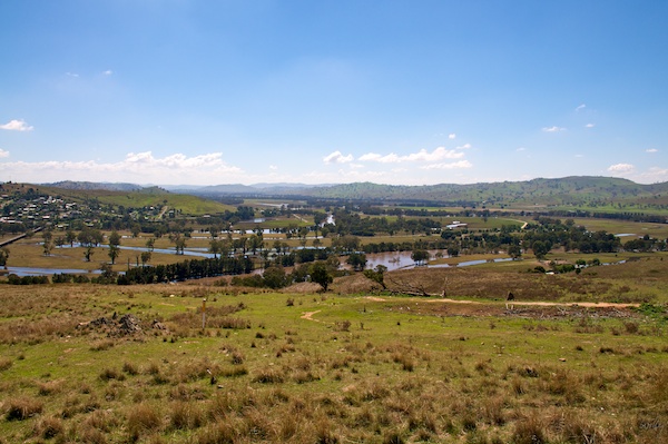 In der kleinen Ortschaft Gundagai holte uns die Flut heute doch noch ein. Von einem Aussichtspunkt im Süden des Ortes liegt der Fluss Murrumbidgee in der Ebene. Sein braunes Wasser überschwemmte hier die ganze Gegend, doch viel Wasser ist bereits abgeflossen - und verursacht nun Probleme weiter unten im Flusslauf.
