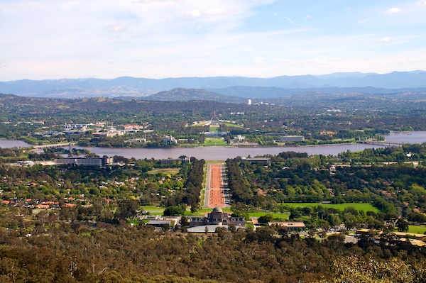 Vom Mount Ainsli geniesst man einen schönen Blick auf die wichtigsten Bauten der Hauptstadt: Im Vordergrund vor der roten Fläche, der ANZAC (Australien and New Zealand Army Corps aus dem ersten Weltkrieg) Parade, steht das War Memorial und auf der gegenüberliegenden Seite des Sees (eines gestauten Flusses) sind das weisse ehemalige Parlamentsgebäude und im Hintergrund das aktuelle Parlament zu sehen. Weiter sind das Oberste Gericht, die Nationalbibliothek sowie weitere Gebäude der diversen Ministerien zu sehen. Die Stadt wurde auf grüner Wiese erbaut, so dass die Anlagen sehr grosszügig ausgelegt werden konnten. Bewohner mussten keine umgesiedelt werden.