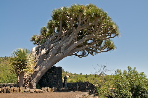 Ab und zu stehen noch imposante Drachenbäume, welche typisch für die westlichen Kanarischen Inseln sind. Diese waren den Ureinwohnern heilig und auch heute noch werden sie in Ehren gehalten und gepflegt.