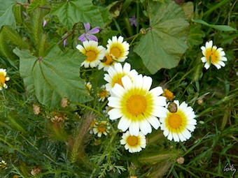 Viele Felder sind übersät mit gelben und weisslichen Blumen, die nach den ergiebigen Regen von der Sonne richtiggehend aus dem Boden gezogen werden.